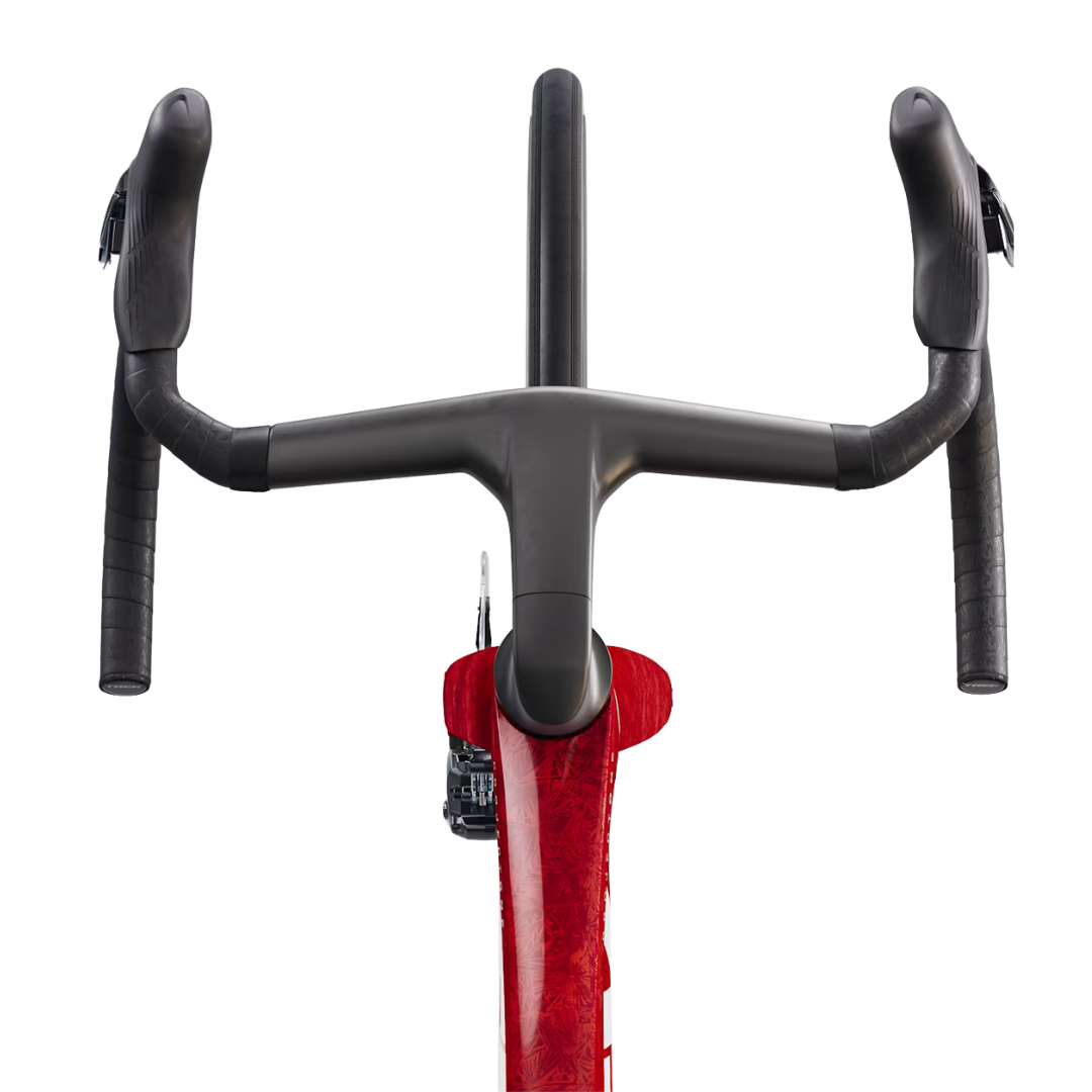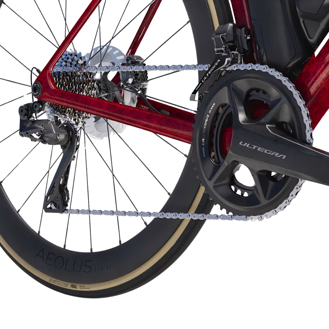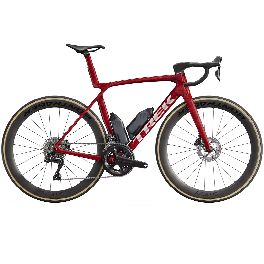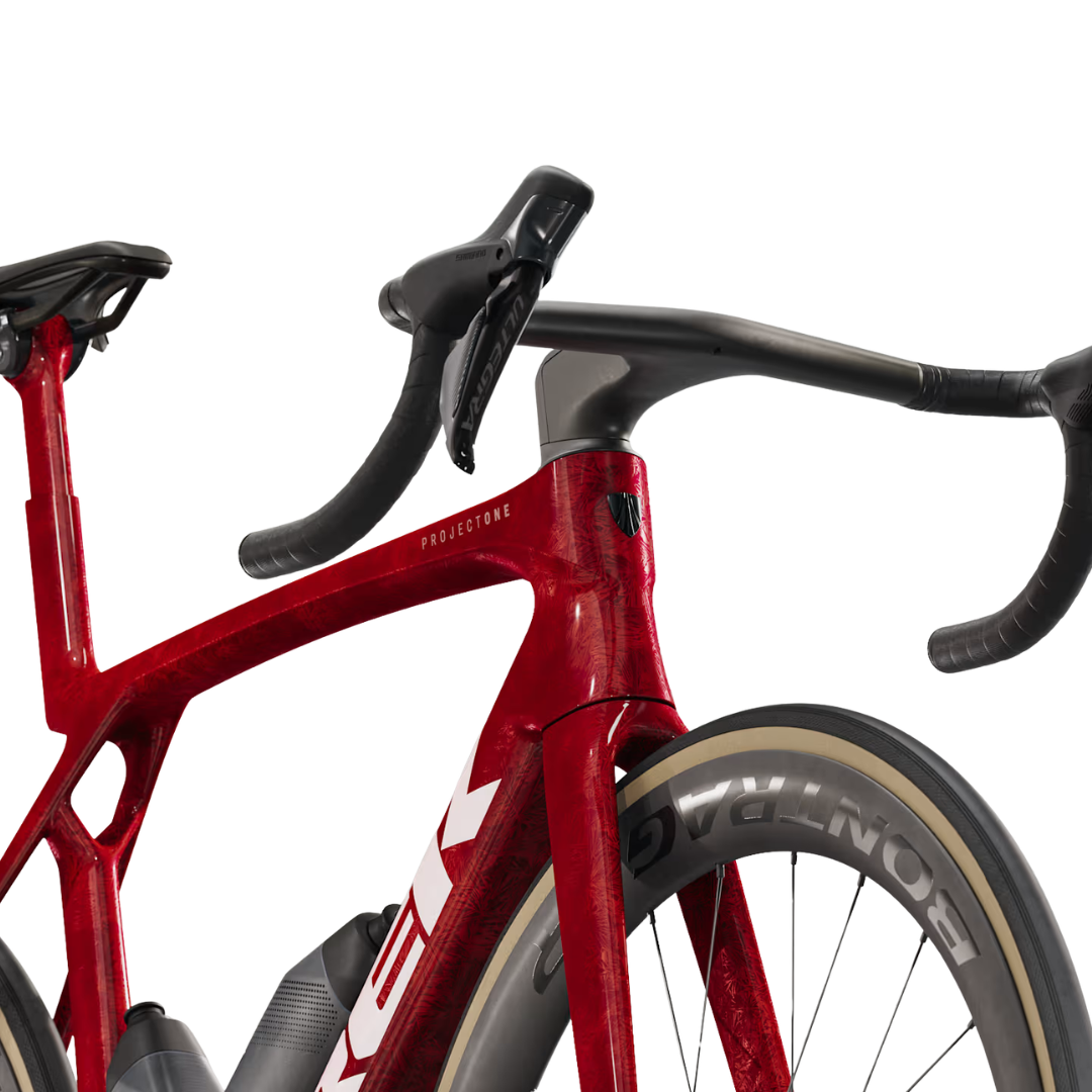 The Madone SLR 7 Gen 8 is an aero, featherlight road bike that’s built to race. Its 900 Series OCLV Carbon frame keeps the weight way down while delivering aerodynamic gains and IsoFlow technology means you don’t have to sacrifice comfort for speed. It comes race-ready, with a wireless 2×12 Shimano Ultegra Di2 group set, Bontrager Aeolus Pro 51 carbon wheels, a Trek Aero RSL one-piece bar/stem, and RSL Aero Bottles and Cages that further reduce drag.